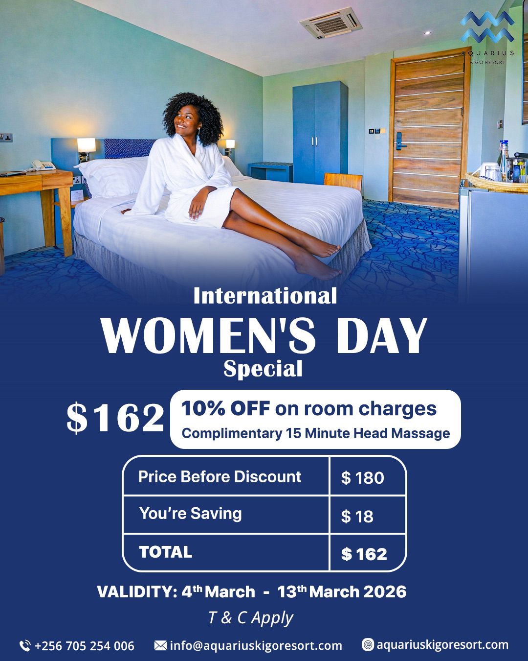 Explore the charming Kampala city and enjoy a relaxing and vibrant stay at Aquarius Kigo Resort, a sanctuary within the hustle and bustle of your travel schedules. Aquarius Kigo Resort accommodation is designed with attention to every need and comfort of our guests in mind. Wind down in one of our generously sized guest rooms and suites majestically crafted with the finest interior design in the world to calm down your day and ignite a sense of peace of mind for your stay as you explore a business, meet family